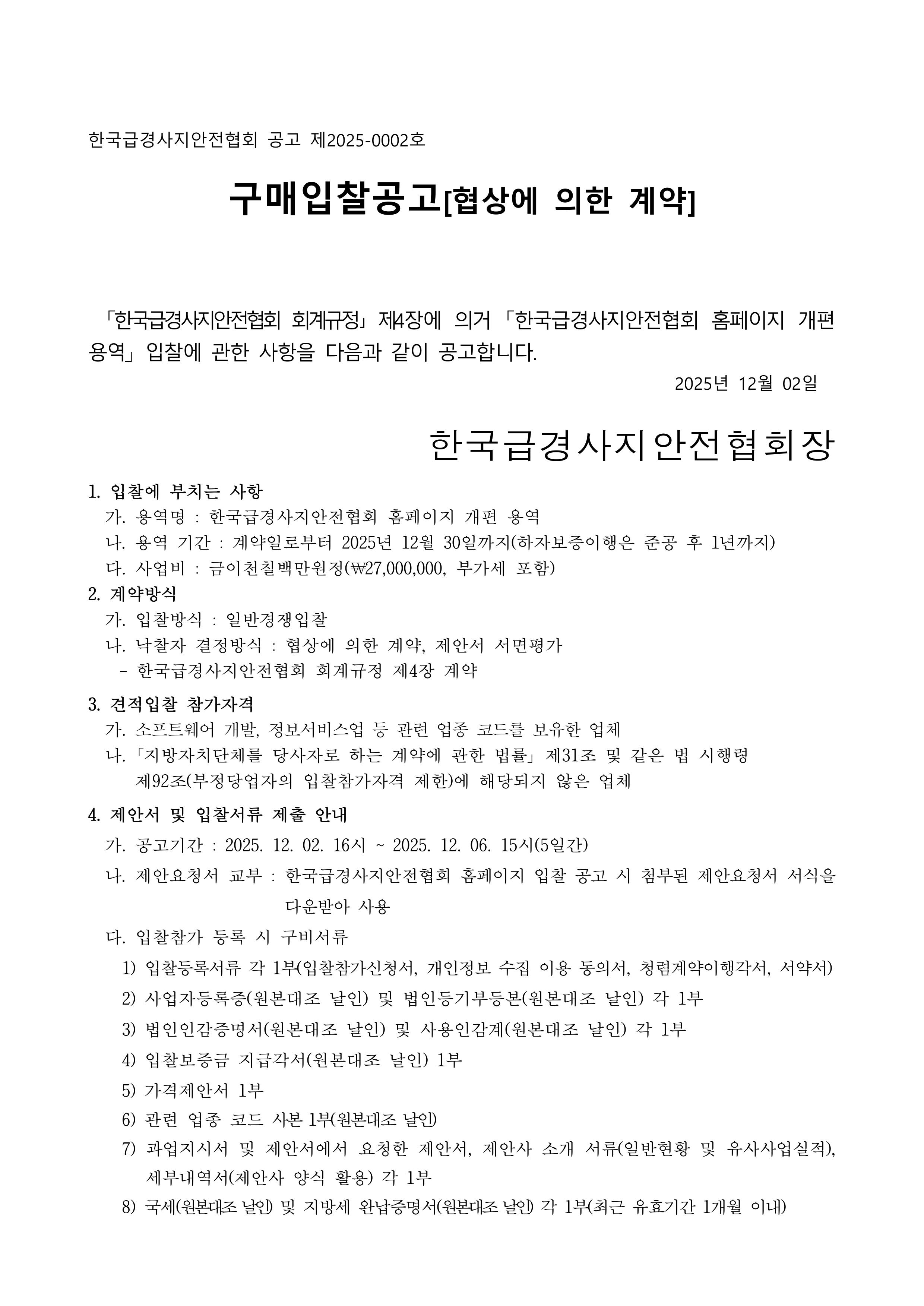 Çѱ¹±Þ°æ»çÁö¾ÈÀüÇùȸ ȨÆäÀÌÁö °³Æí ¿ë¿ª ÀÔÂû °ø°í