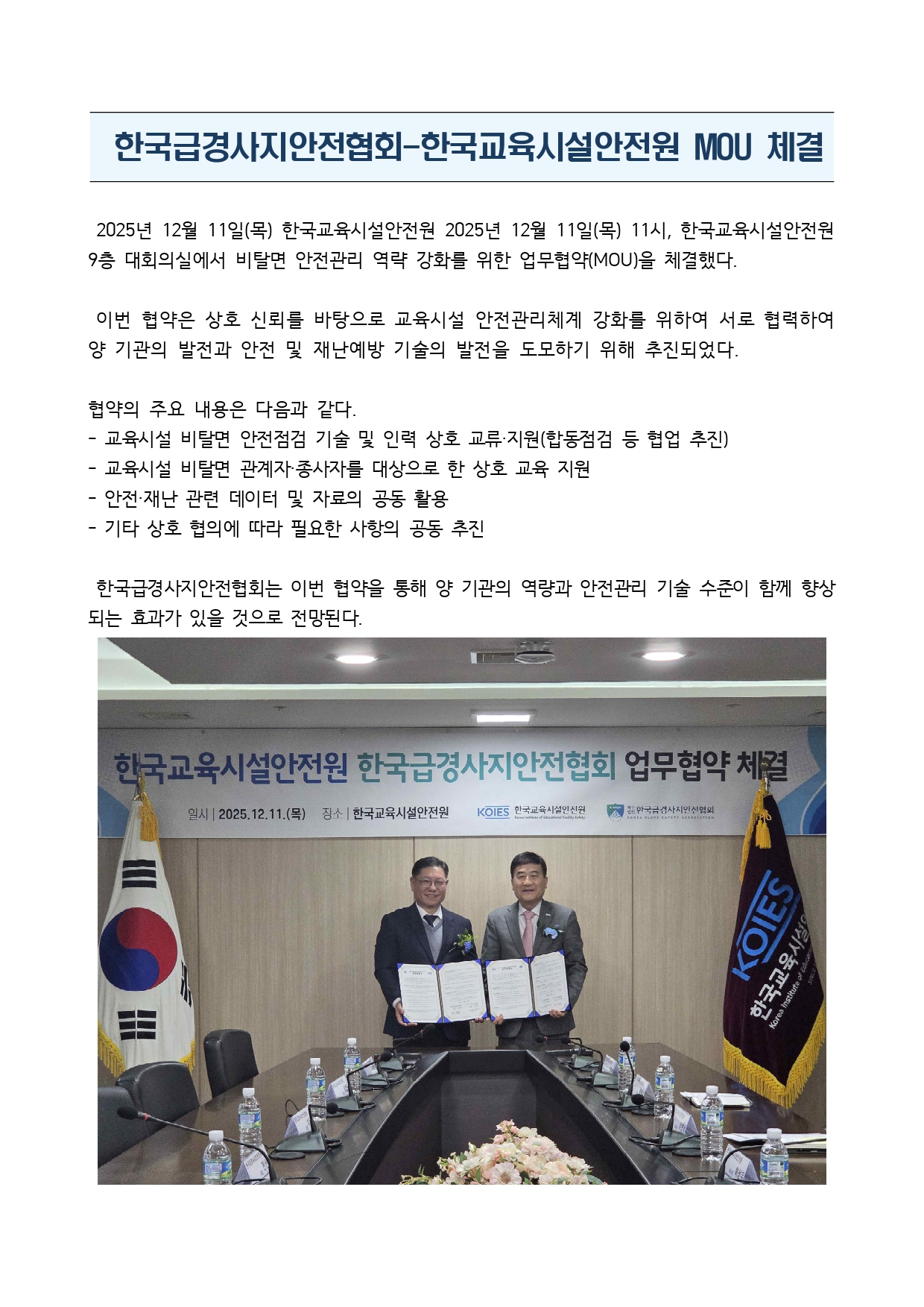 Çѱ¹±Þ°æ»çÁö¾ÈÀüÇùȸ-Çѱ¹±³À°½Ã¼³¾ÈÀü¿ø MOU ü°á