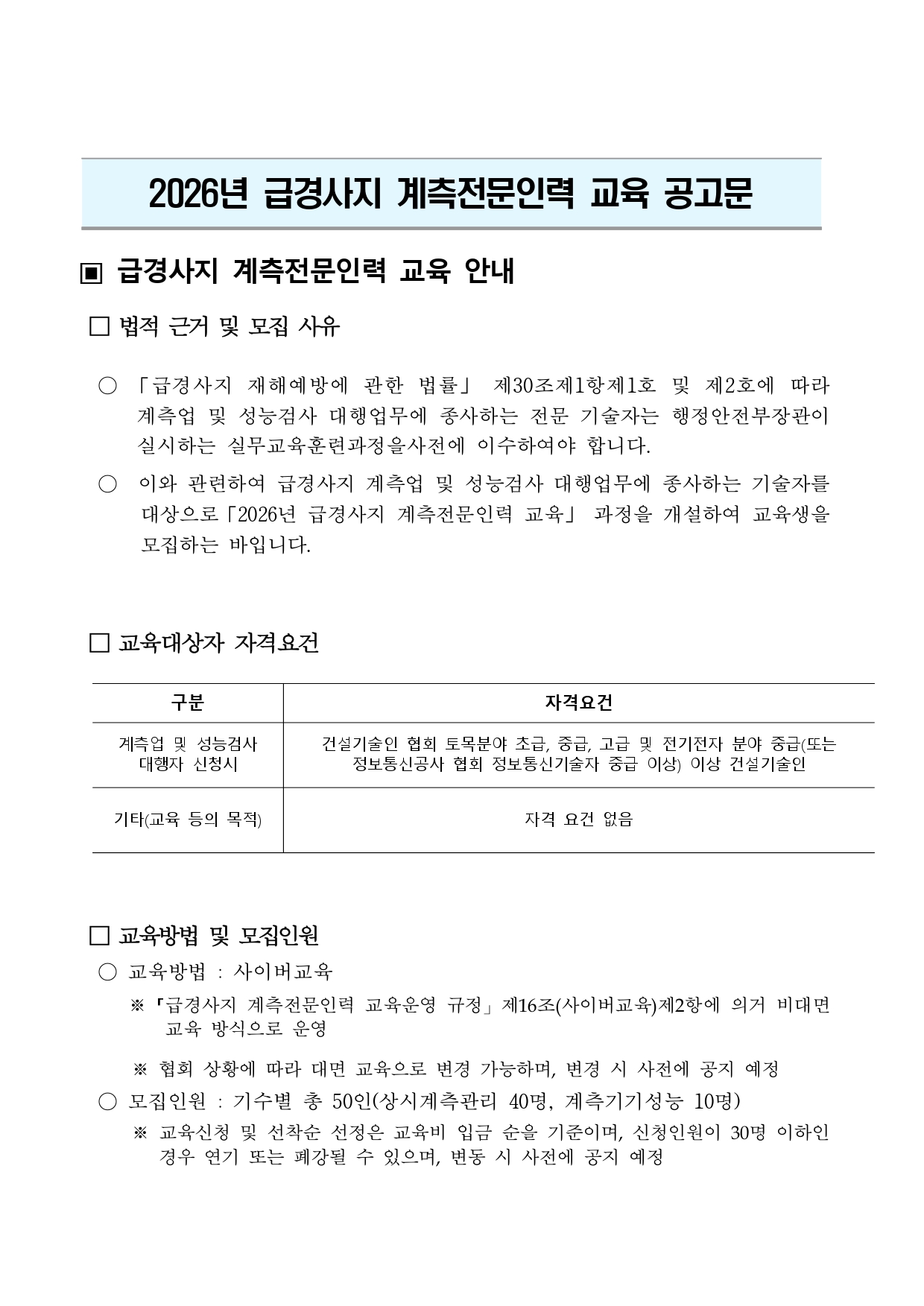 2026³â ±Þ°æ»çÁö °èÃøÀü¹®Àη ±³À° °ø°í¹®