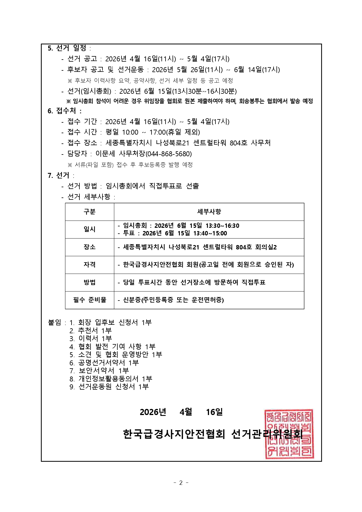 Çѱ¹±Þ°æ»çÁö¾ÈÀüÇùȸ Á¦3´ë ȸÀå ¼±°Å °ø°í